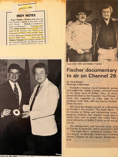 Bobby Fischer presenting song to Senator Sasser in Washington D. C. and Gene Bell documentary on Bobby Fischer.